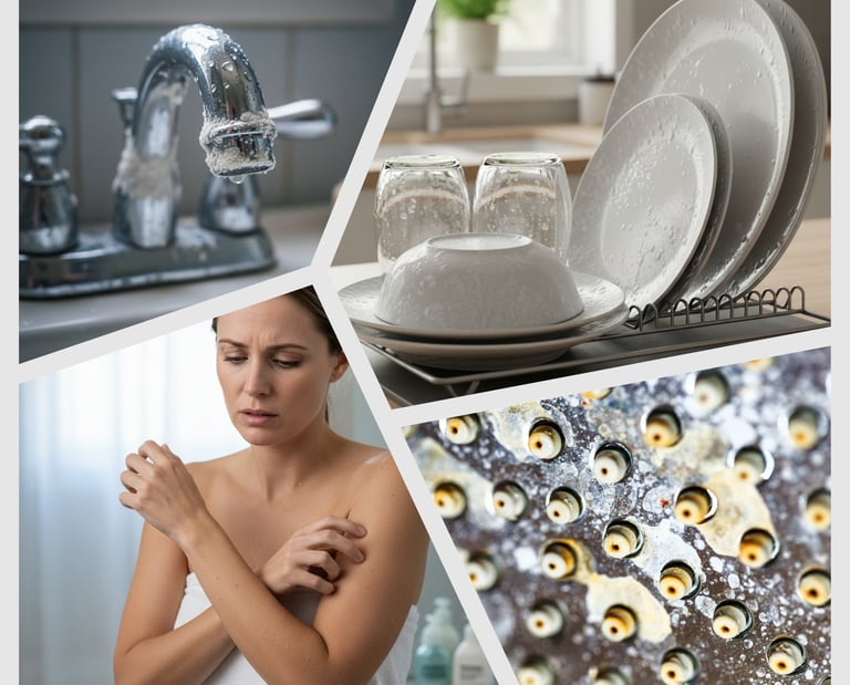 Do you see white buildup on faucets, spotted dishes, or itchy skin after showering? Our local water is classified as "very hard" because it contains high levels of calcium and magnesium, which leave scale in your pipes, reduces appliance efficiency, also drying out hair and skin. We install softening systems that remove these minerals and protect your plumbing.